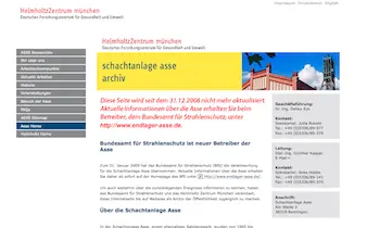 Im Folgenden finden Sie die archivierten Webseiten des Bundesamtes für Strahlenschutz, der Asse-Gmbh und des Helmholtz Zentrums München zur Schachtanlage Asse II.